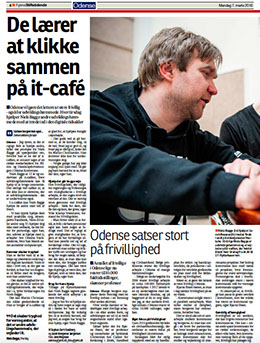 A story about disabled volunteers who helps other disabled people using a computer. Broad in Fyens Stiftstidende 2017